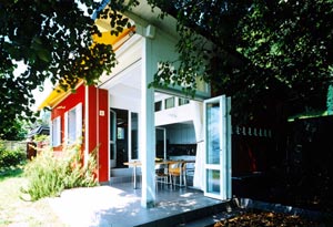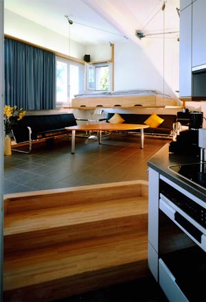 Umbau Strandhaus zu Wochenendhaus mit Minimalgrundriss und Bootssteg am Zürichsee